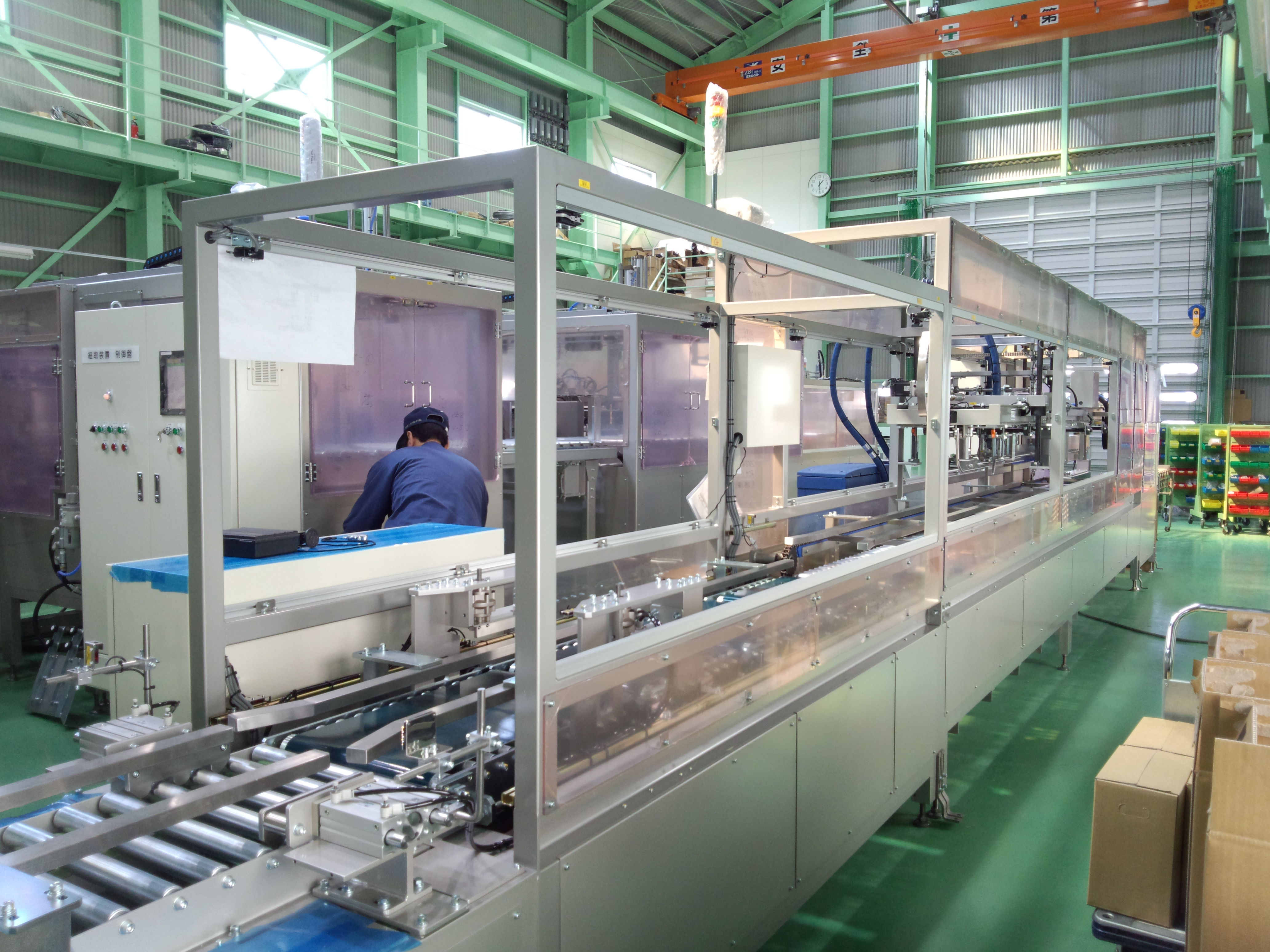 導入コンベアを含む機長は13mにもなりますが、業界初の処理能力を確実に安定して封函する事が出来ました。
